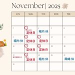 11月の営業日程などのお知らせです。